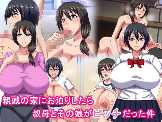 親戚の家に泊まりに行ったら叔母とその娘がビッチで襲われHしまくり、ラブラブになっていくCG集です